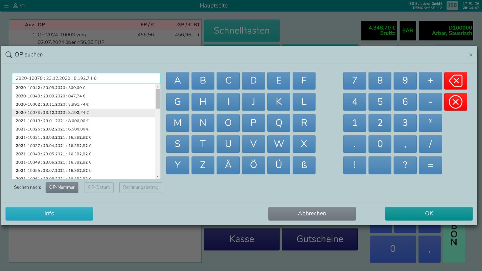 - Offene Posten aus der Warenwirtschaft auswählen und (auch teilweise) begleichen.